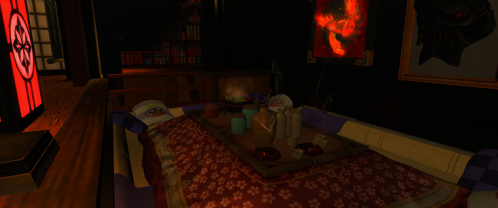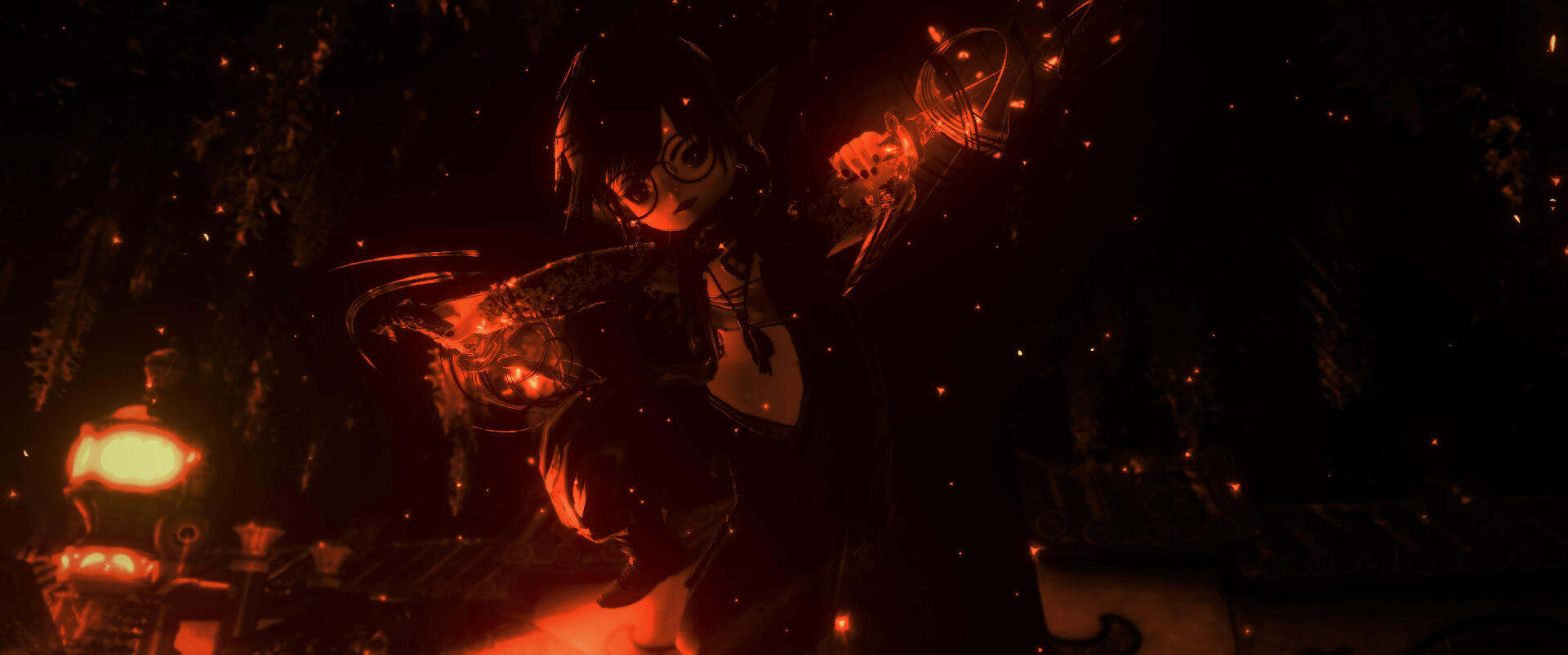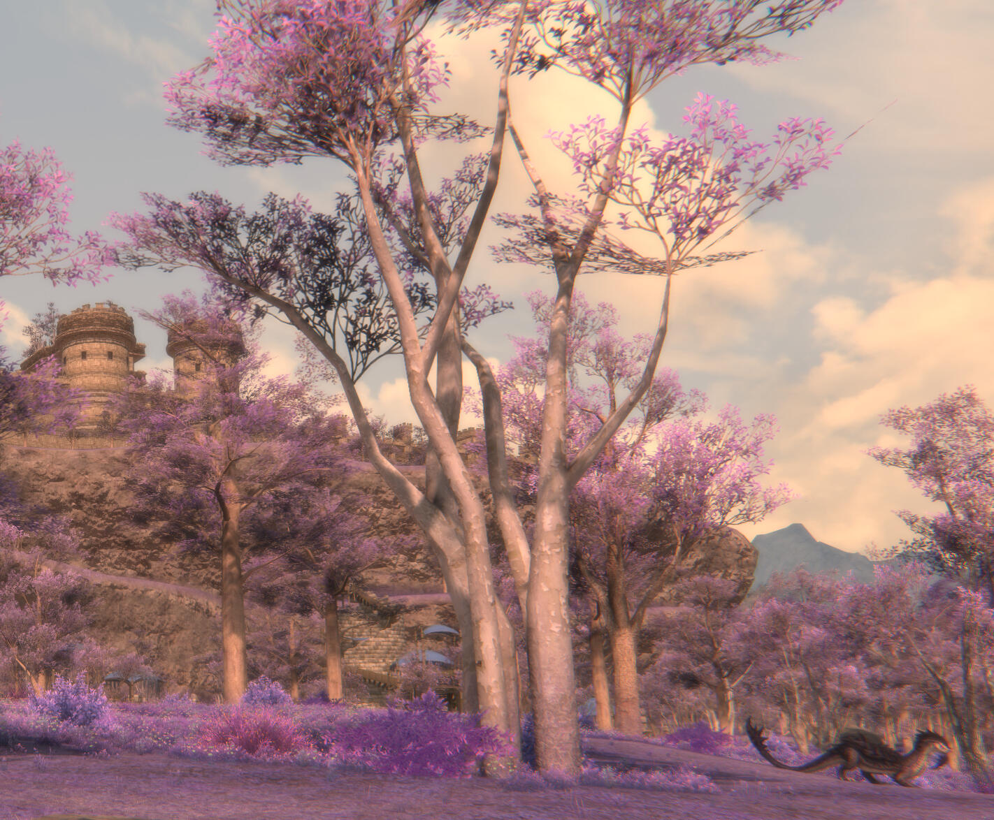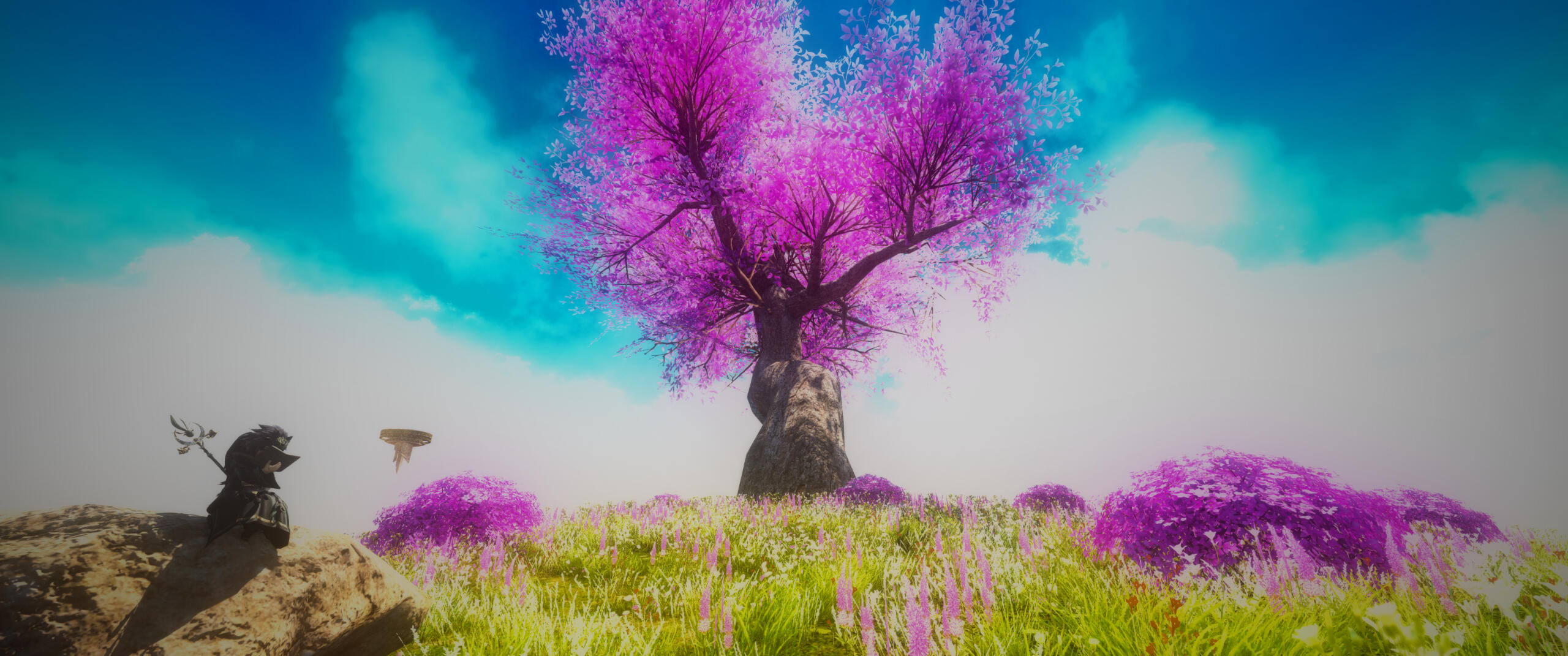 Deep within a dense, dank swamp resides a massive wizard's tower, where Amanita keeps not just her massive library of history books and grimoires, but also her stash of magical artifacts. This tower resides in the remnants of her home in the Nachtlands, part of the Kingdom of Selene, which floats adrift in the aetherial sea after calamity befell the Sixth Shard. Amanita's main way of accessing it is either via direct teleportation by focusing on the orb in the courtyard as a central waypoint, or via a magical painting inside her cabin tucked deep in The Black Shroud.The waters of the swamps grant healing properties in their deceptively murky depths. By bathing in the waters, one will heal wounds, cure themselves of disease, and ail afflictions that may be discomforting them. The animals that reside in the swamps are entirely harmless, although there are several gargoyles that fly around the swamp acting as sentries for potential intruders, if someone were to manage to get into her dimension.The wizard tower hidden in the deep swamp is where Amanita has made her official home. It is a several story wizard tower that spans above the treeline, the tallest floor granting a view of the eternally nightsky. Inside contains multiple floors of vast libraries containing books on history of several worlds she's visited, many, many grimoires and tomes, as well as personal journals accounting portions of her life. The top floor, protected by several wards that trigger without Amanita's staff in hand, is her personal sanctuary. The roof is see through from the inside, granting a view of the everlasting night sky, and along the floor are flowers from her lost homeworld. Dotting the walls are grimoires and history books recovered from her and a group of the scions revisiting her lost world, after Endsinger was defeated and the Final Days halted.