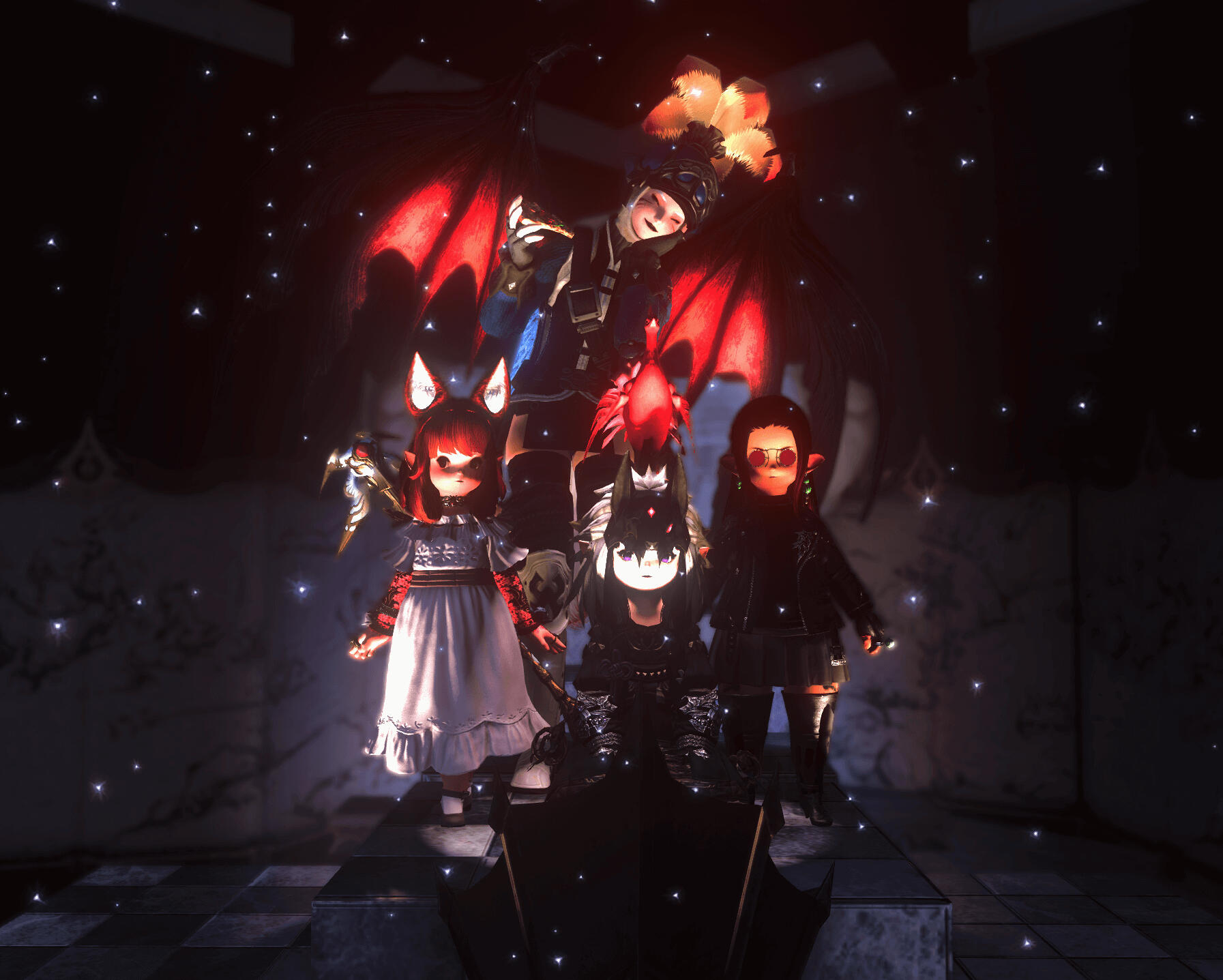 Years past, and the events of The Flood were beginning. Amanita was in Lakeland doing some fishing when the Warriors of Light halted the Flood, and only found out about what happened to her friend's party through word of mouth. She never believed that their party was the root cause of the Flood, and only worried about her friends and their passing when she went into a self-exile for a few decades, living off the land and doing small trades with the budding communities in the wake of the halted calamity.Once the Crystarium was founded, Amanita would eventually leave to join the recently founded Night's Blessed, joining under the name Chanterelle, a mushroom that grew on her homeworld. She had assumed she'd meet her family there, as they were also a group that worshipped the night and prayed for its return, such as her coven would've.
