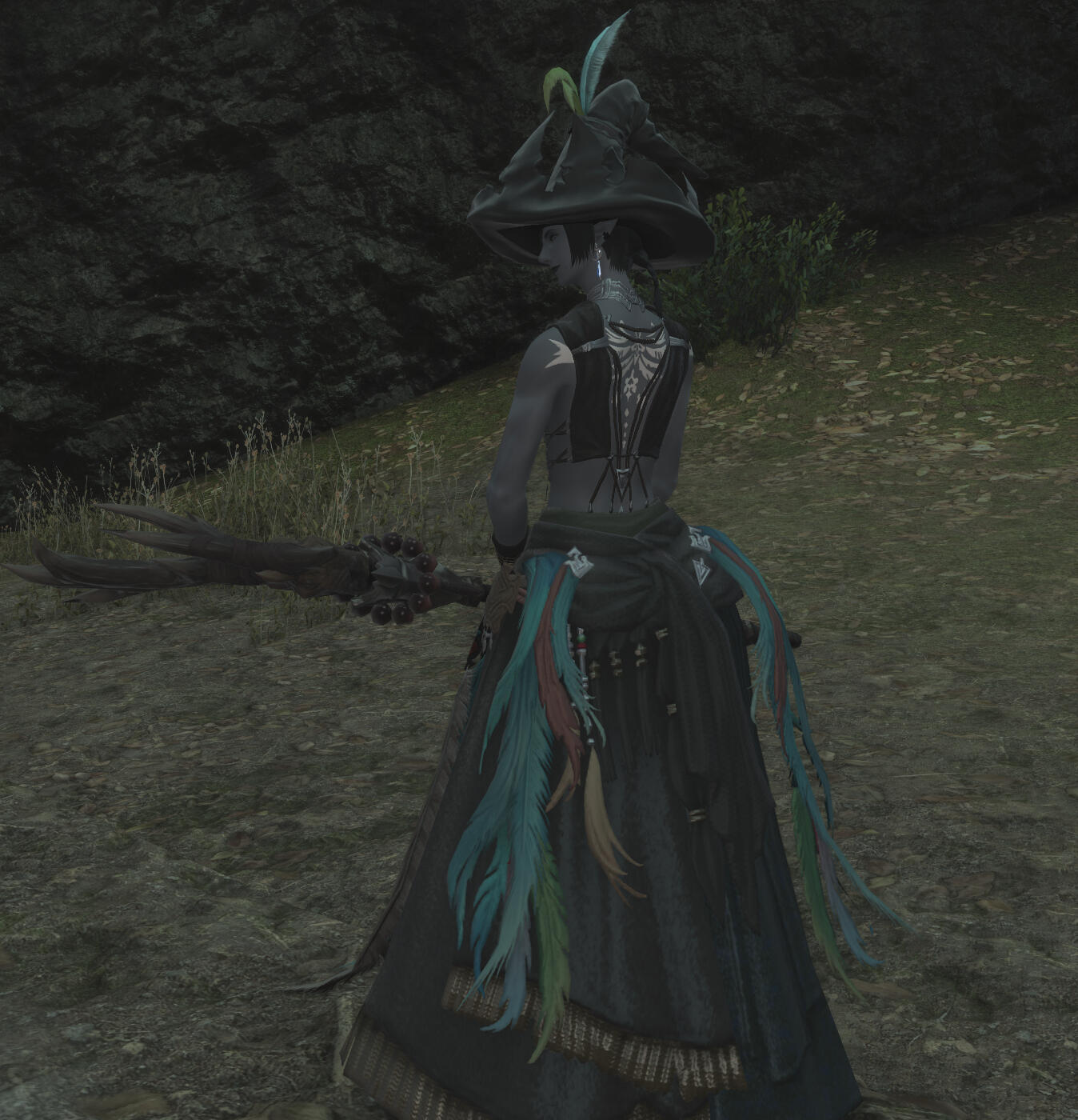 The Witches of the Nachtlands typically wear light, breathable attire of varying styles of cloths, adorned in charms, feathers, and other forms of jewelry, as well as tall pointy hats. The staves they use to channel their magicks are made from wood using transmutation magic to form the base, then any charms they wish to add to it to personalize it to their liking.Most charms the witches wear typically depict the moon in some form, a symbol to their worship of Nykios, the Nightmother. Feathers, crystals, and other charms are typically used to help bolster mana, as materia can be slotted into gemslots on gear. Potions and other gear are typically stored on belts or in small pouches tucked in or along their loose attire.Some choose to adorn tattoos and body paint as well.