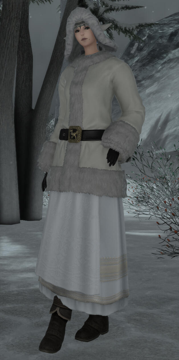 The Schneesturm Mountains are a very cold and bitter region, and thus the people of the Holy Kingdom dress accordingly. Donning furs, leather, and cloth, those of the Noble class typically don clothing of higher quality material, decorated in the colours of patterns of their family's house, with plenty of fur trim to keep warm.Those living outside the walls of the larger cities where the winds are stronger and the snow falls heavier typically don homemade, heavy-fur clothing to stay warm. These folk are typically exiled from the cities on the grounds of heresy.